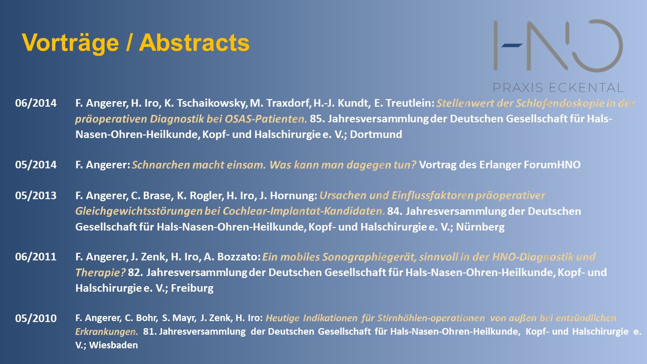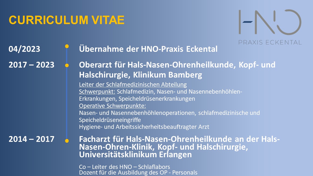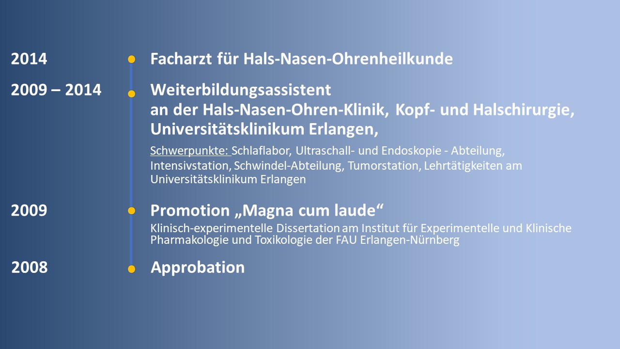 Persönliches Als Familienmensch mit enger Bindung an Erlangen und die Region, freue ich mich nun, nach meiner klinischen Laufbahn, für Sie in der HNO – Praxis Eckental da zu sein. Ich bin verheiratet und habe zwei Kinder. Von daher liegt mir Ihr Wohl, vom Kindesalter bis ins hohe Alter, am Herzen.